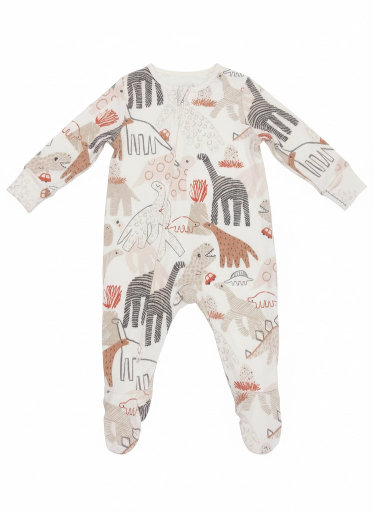 This dinosaur-themed zipper sleepsuit combines functionality with imaginative design for restful nights. The full-length front zipper enables effortless dressing and streamlined diaper changes, eliminating the need to undress your child completely. Constructed from soft, temperature-regulating fabric, it maintains optimal comfort throughout sleep cycles. The snug fit prevents bunching while allowing natural movement, and the durable construction withstands frequent washing. An ideal choice for parents seeking practical sleepwear that captures children's fascination with dinosaurs.