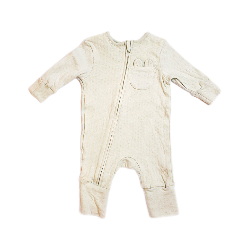 The Apple Green Zippered Romper delivers exceptional comfort through its 100% cotton construction. The breathable, lightweight material treats your little one's skin with gentle care, ideal for both playtime adventures and casual outings. For longevity, simply machine wash cold (maximum 30℃) with similar colors on a delicate cycle.